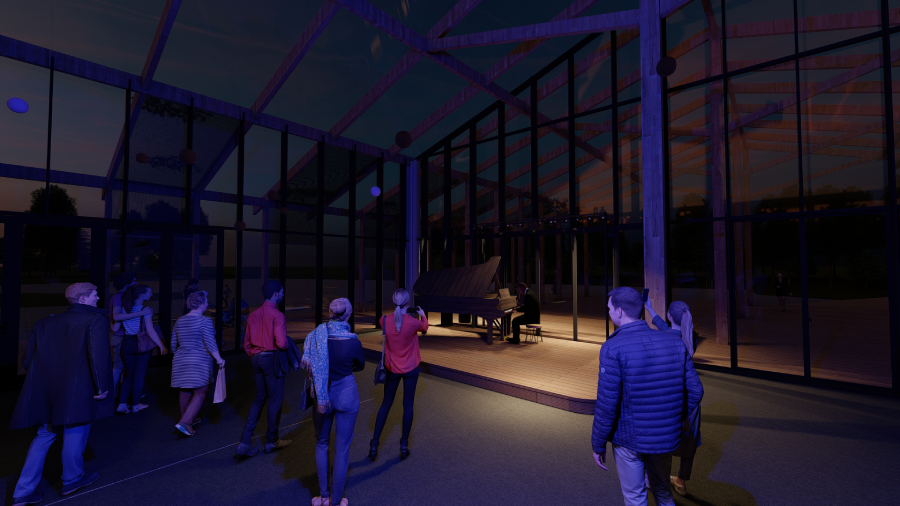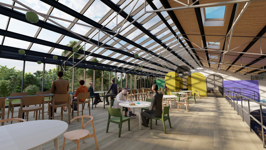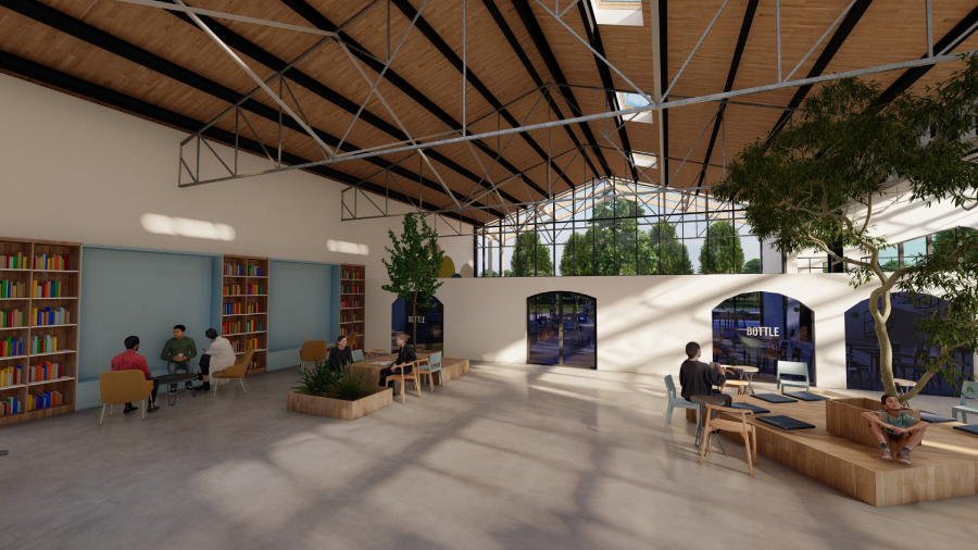 BOTTLE comporte au total un restaurant, un bar avec un espace scénique, des espaces de détente et un espace d’exposition centré sur le recyclage plastique par impression 3D.